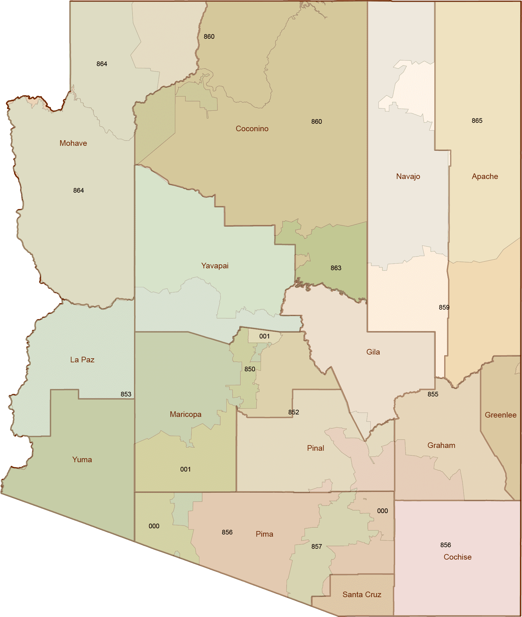 Arizona 3-Digit ZIP Code Map with Counties — Vector Edition