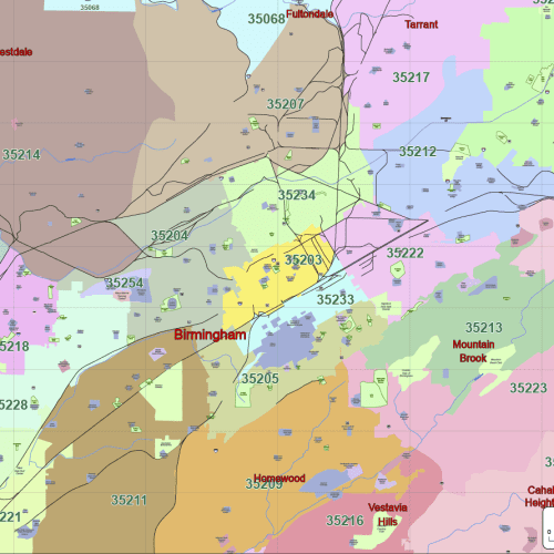 Birmingham, Alabama Vector Map-Editable Adobe Illustrator File with 17 Custom Layers & Local Landmarks