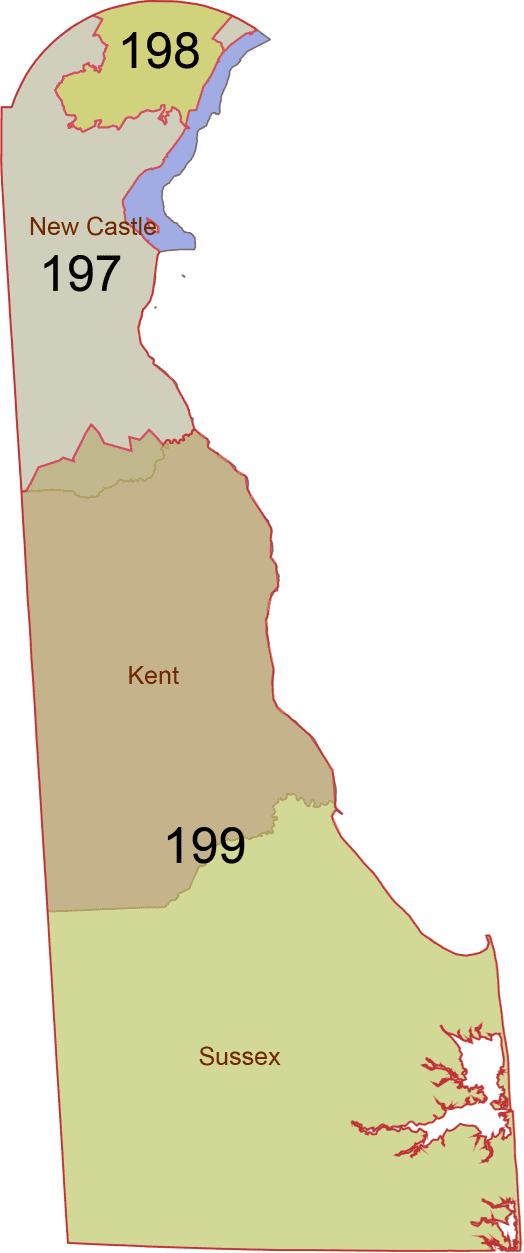 Delaware 3-Digit ZIP Code Map with Counties