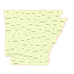 Arkansas Colored Vector County Map – A high-quality, fully editable vector map of Arkansas, featuring clearly defined county boundaries in distinct colors. County name on separate layers.