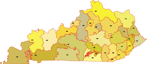 KY ZIP Code Map With Cities Counties