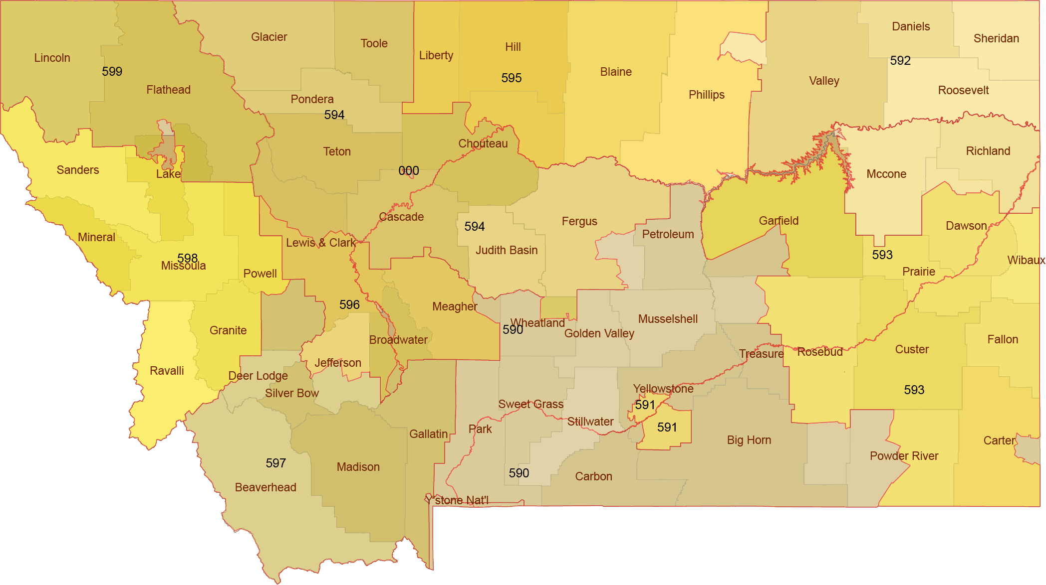 Montana 3-Digit ZIP Code Map with Counties — Vector Map