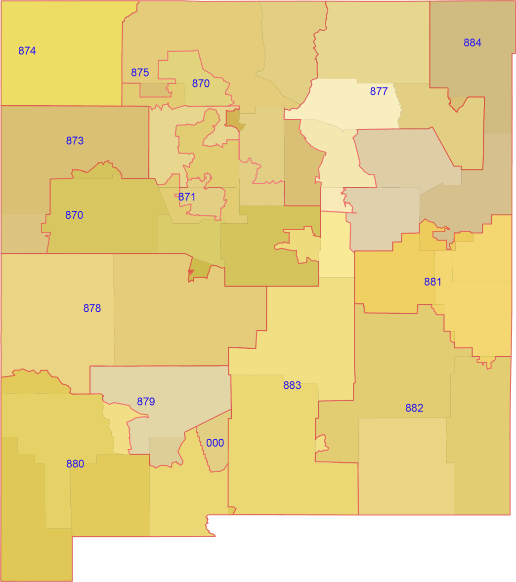 New Mexico 3-Digit ZIP Code Map with Counties — Vector Map