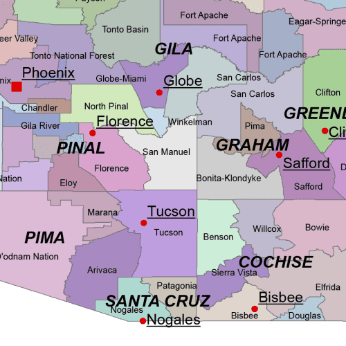 Arizona Vector County Map is a professionally designed Illustrator artwork. The map supports infinite magnification.