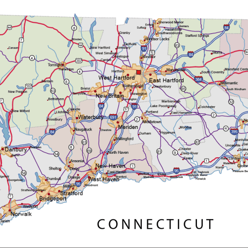 Connecticut Vector County Map is a professionally designed Illustrator artwork. The map supports infinite magnification.