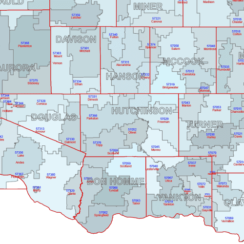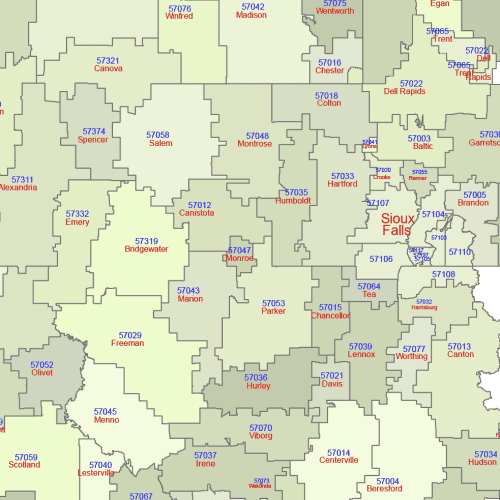 South Dakota ZIP Code Map With Cities Includes the 5-digit zip code number where primary city associated with that zip code