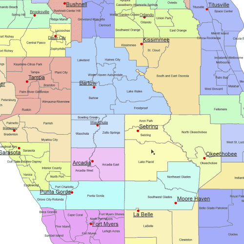 Florida County and Communities Map