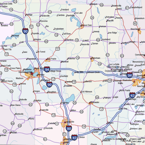 The Wisconsin Road and City Map displays a wide range of features, including major roads, cities, and larger settlements. Rivers, lakes. AI, PDF.