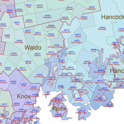 Maine ZIP Code Map Basic for general mail delivery to residential and commercial areas.