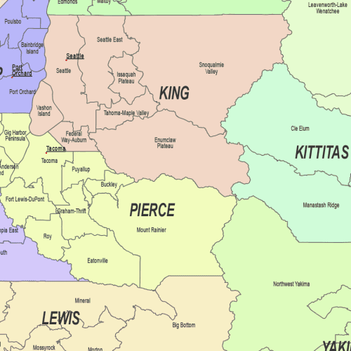 The Washington Vector County Map is a professionally designed Illustrator artwork. The map supports infinite magnification.