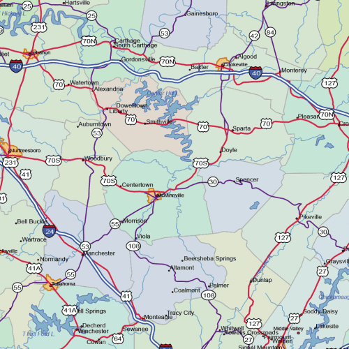 Tennessee Road and City Map