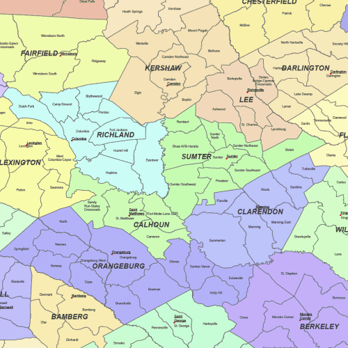 South Carolina Colored County Map