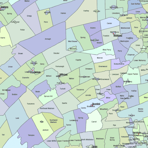 Pennsylvania Communities Map showcases cities, districts, villages, boroughs, barrios, and townships. Minor Civil Divisions (MCDs) map