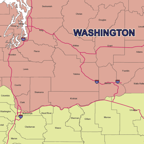 Precision Pacific Region County Map easy to open, print, or edit in most design software, Adobe Illustrator, and a Layered PDF file