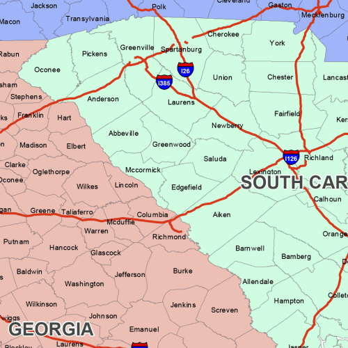 South Atlantic Region Counties colored by states – Each state is color-coded for quick visual grouping. Adobe Illustrator file