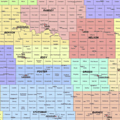 North Dakota Communities Map showcases cities, districts, villages, boroughs, barrios, and townships. Instant download file.
