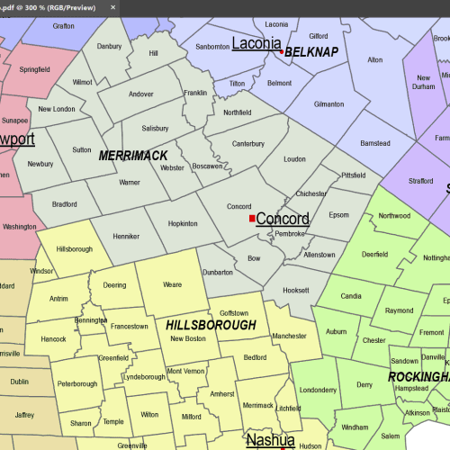 The New Hampshire Vector County Map is a professionally designed Illustrator artwork. The map supports infinite magnification.