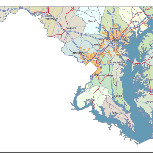 Maryland Vector County Map is a professionally designed Illustrator artwork. The map supports infinite magnification.
