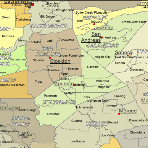 - California Subdivision Map – Based on U.S. Census divisions such as towns, communities, or CCDs (Census County Divisions).